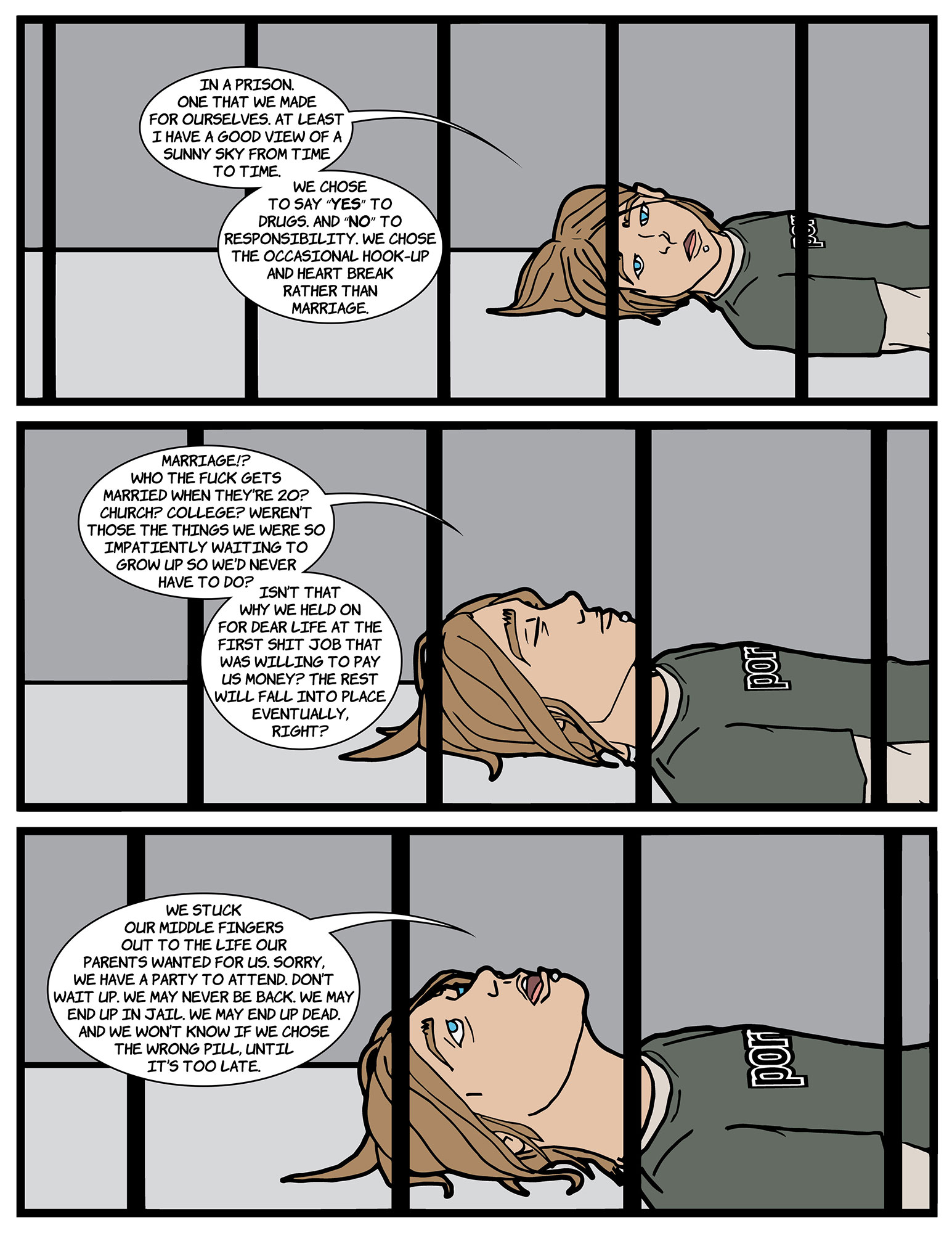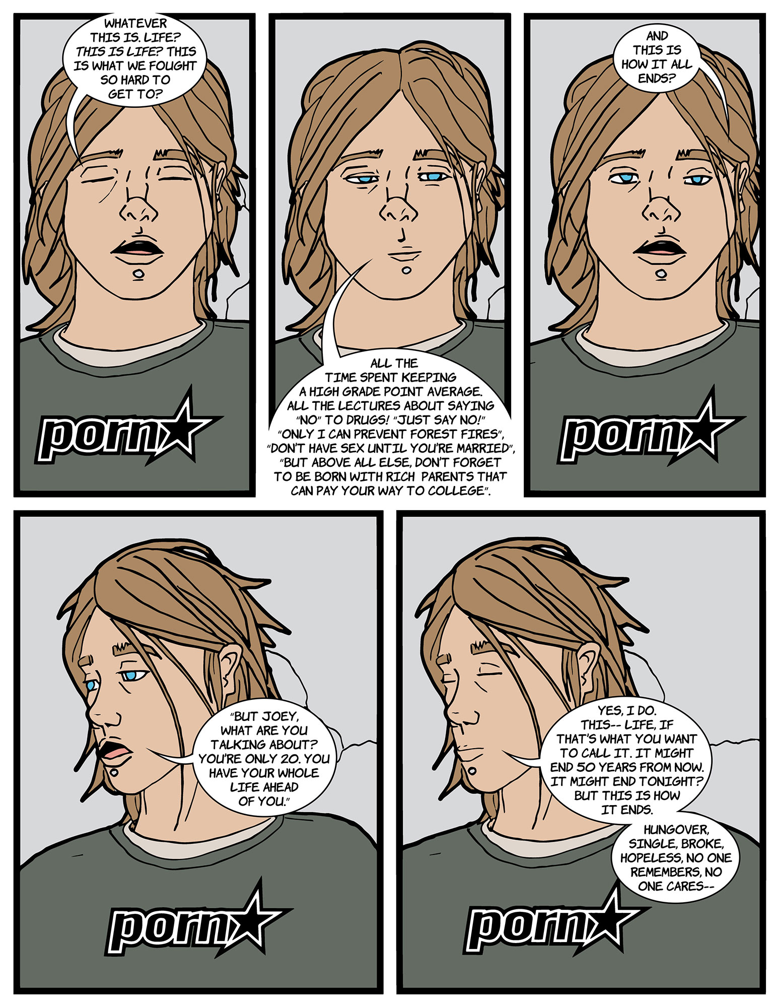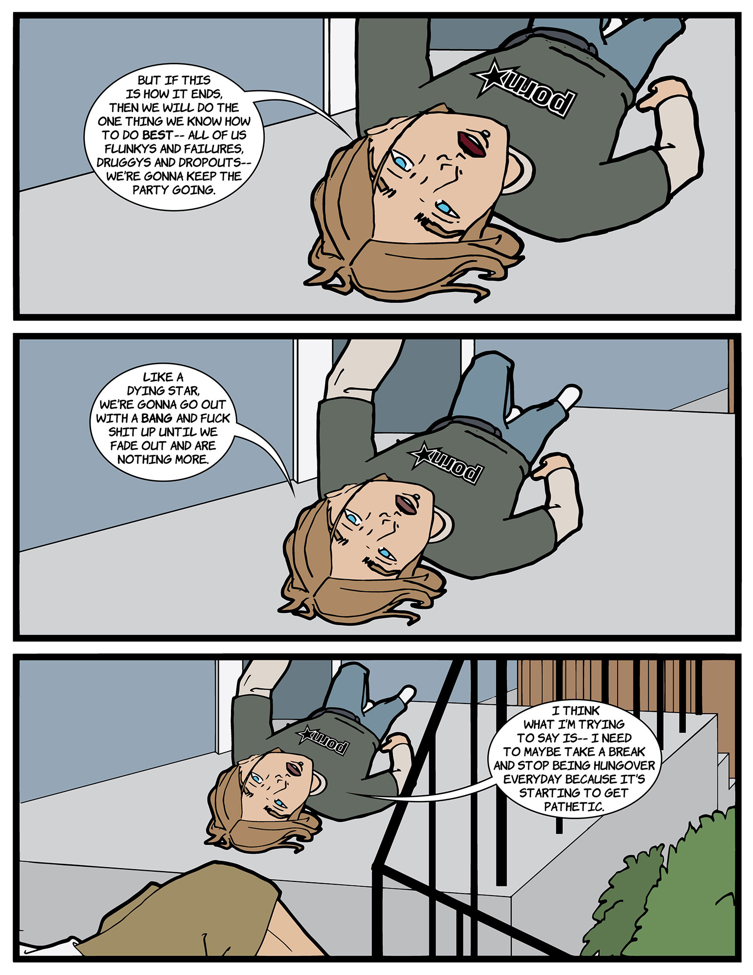 Last Monday is a 250 page comedy/drama Graphic Novel that takes place 20 years ago and is the story of 6 friends that are trying to throw one last party before growing up, moving apart, and moving on in life all while dealing with the loss of their friend a week earlier.